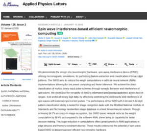 Our article “Spin wave interference-based efficient neuromorphic computing” published in Applied Physics Letters.